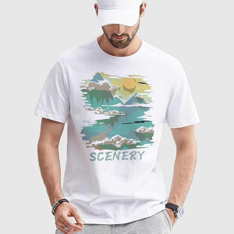 تی شرت آستین کوتاه مدل طبیعت گردی طلوع افتاب mo455