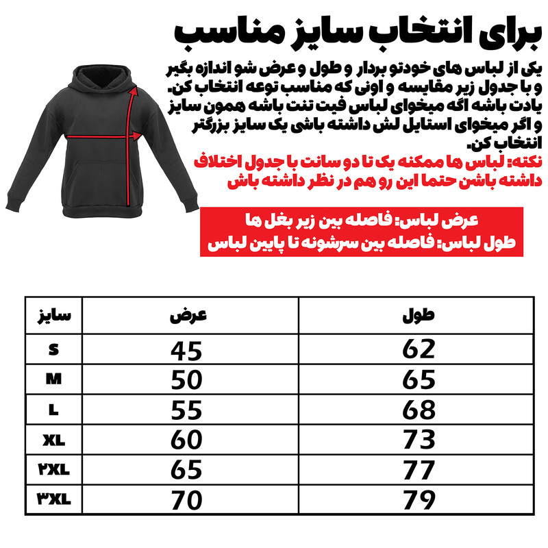 این هودی از پارچه اسپان ویژه تولید شده است پارچه ای با کیفیت بالا که به دلیل ترکیب دقیق الیاف پنبه و پلی استر حس نرمی و راحتی فوق العاده ای ایجاد می کند بافت منسجم این پارچه سبب می شود لباس ضمن لطافت بالا دوام بسیار خوبی نیز داشته باشد اسپان ویژه برخلاف پارچه های نخی در برابر شست و شو آب نمی رود و فرم اولیه خود را به طور کامل حفظ می کند همین ویژگی باعث می شود ظاهر هودی پس از استفاده طولانی مدت یا شست و شو تغییر نکند و همیشه خوش فرم باقی بماند دوخت این هودی با بهره گیری از ماشین آلات صنعتی و تجهیزات پیشرفته انجام شده است فرآیند دوخت شامل استفاده از دستگاه های راسته دوز میان دوز و چهار نخ جک می باشد این نوع دوخت موجب افزایش استحکام در نواحی حساس و جلوگیری از باز شدن درزها در اثر استفاده روزمره می شود دقت بالای برش و دوخت صنعتی موجب شده تا محصول نهایی دارای فرم دقیق و تمیز با دوختی یکنواخت و بادوام باشد الگوی این هودی بر اساس استانداردهای روز طراحی لباس طراحی شده و فرم آن به گونه ای است که با انواع اندام سازگاری دارد و ظاهری منظم و خوش ایست به بدن می دهد انعطاف پذیری متعادل پارچه اسپان ویژه باعث می شود لباس در هنگام استفاده احساس راحتی و آزادی حرکت را منتقل کند بدون اینکه حالت افتادگی یا کشیدگی پیدا کند این ویژگی باعث می شود هودی هم در استفاده روزمره و هم در فعالیت های ورزشی کاربردی و خوش فرم باقی بمانددر فرآیند چاپ این محصول از تکنولوژی روز دنیا دستگاه دی تی اف استفاده شده است تا رنگ ها با وضوح بالا و ماندگاری طولانی روی پارچه تثبیت شوند چاپ انجام شده در برابر شست و شو مقاوم است و ترک خوردگی یا تغییر رنگ در آن مشاهده نمی شود همچنین پارچه اسپان ویژه به دلیل سطح صاف و تراکم یکنواختی که دارد چاپ را به خوبی جذب می کند و جلوه بصری طرح ها را شفاف و دقیق نمایش می دهد
