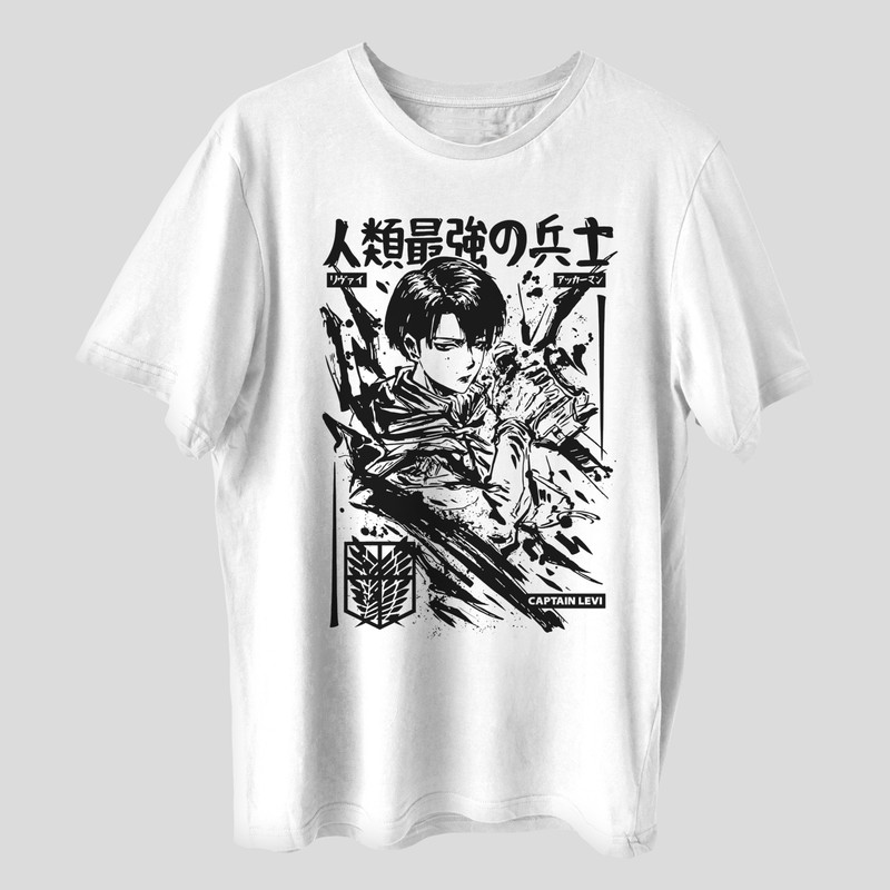 تی شرت آستین کوتاه مردانه مدل انیمه ای اتک ان تایتان شخصیت لیوای کد anm245